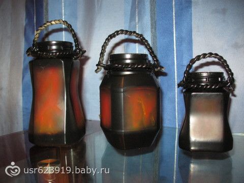 банки из под кофе расписаны аэрографом… и это фонарик для папы, мамы и сына!!!