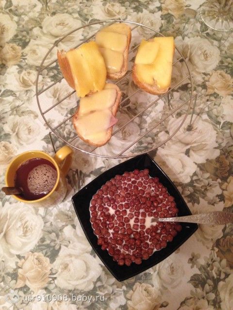 Завтрак был ранний в 7 утра: шоколадные шарики с молоком и два бутера с сыром (на фото 2 бутера еще мамины) + какао Шариков кажется очень много, но там просто тарелка не глубокая и с узким основанием.