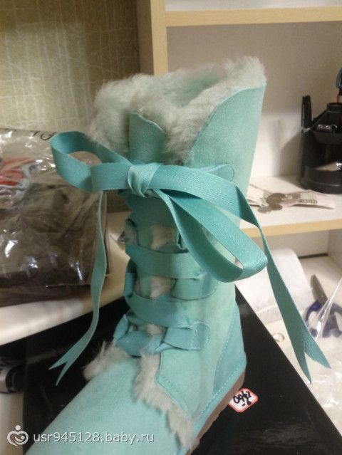 Зимние угги. Заказывала девочка. Написано на сайте натуральные, но мне показалось, что искусственные. Хотя подруга пришла и вынесла вердикт что натуралки)) Заказывала девочка немного другие-с помпонами на концах веревочки, но пришло вот такие((но эти тоже прикольные)Качество хорошее