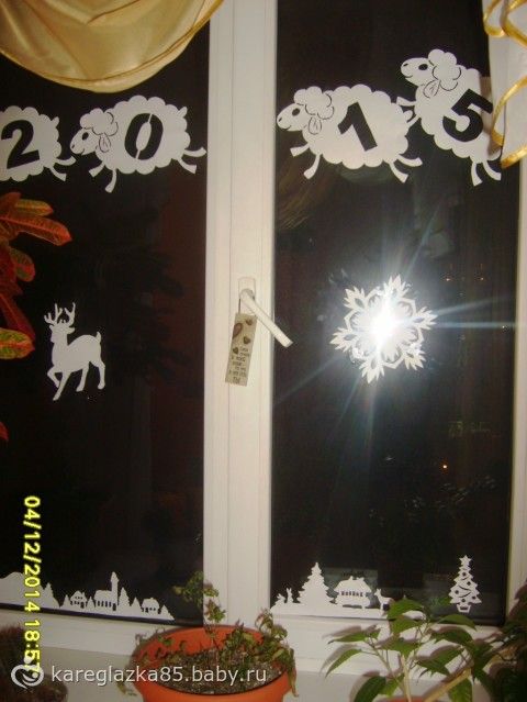 Мы уже кофейную ёлочку сделали, Новогодний венок и камин из картонных коробок). Ну и окна начинаю украшать.