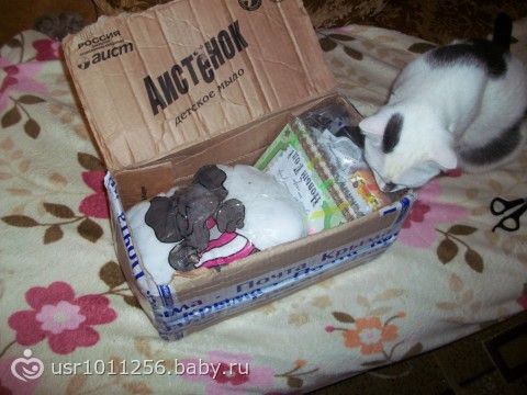 Подарки всей нашей семье, даже про кошу не забыли, которая самая первая и сунула нос в коробку))