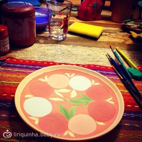 Вчера у меня было первое занятие росписи по керамике. Занятие длилось три часа. Валюша в это время была на занятиях творчеством для малышей. А я вообще не заметила, как время пролетело. И засиделась еще на час почти. По моим ощущениям, можно так весь день сидеть, да и потом будет жалко оторваться. Такое удовольствие.