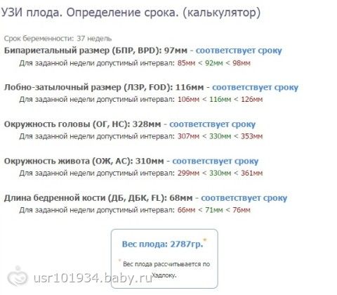 По калькулятору определения срока по всем замерам мы так и соответствуем 37 неделям. Всё сама перепроверила