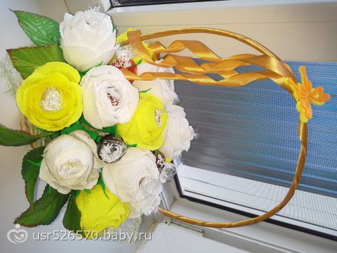 Хочу поделиться с вами своими трудами рукодельными. Я всегда любила что-нибудь делать. Увлекалась и вязанием, и квиллингом, и бисероплетением. В общем, рукам моим покоя нет. После рождения детей времени все не было. И вот, в этом году охватила меня страсть по букетикам из конфет и топиариям. Вот фоточки
