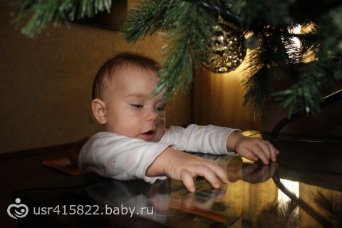 А с ёлкой то… прям прикол… где милана? стоит у стола у ёлки)Ну так тянется конечно, но я ей сняла все нижние игрушки..