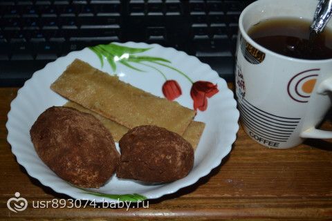 ПП картошка и хлебцы с арахисовой пастой. Картошку я не поняла честно говоря… Не похожа совсем на привычное пирожное, но вроде есть можно, особенно с чаем сладким(сахзам) А вот арахисовая паста ооочень вкусная