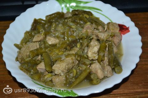 Фасоль тушеная с свининой. Знаю, что на ужин свинину не надо бы… Но у меня вариантов не было. Успокаиваю себя, что свинина совсем без жира была))