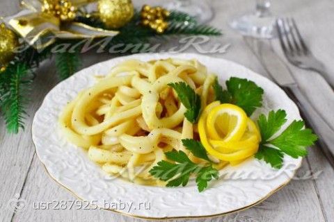 7. Думаю, после салата останется сырой кальмар, сделаю — Маринованные кольца кальмаров.