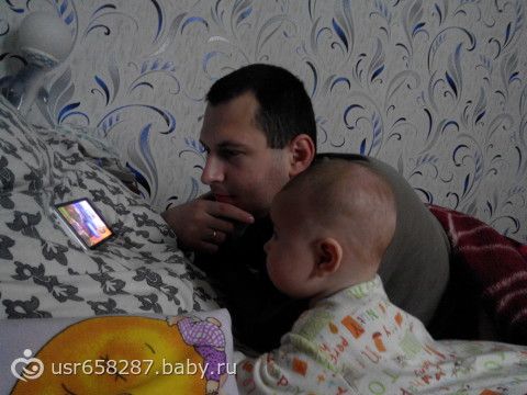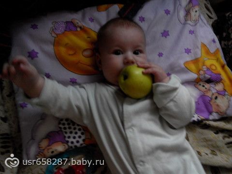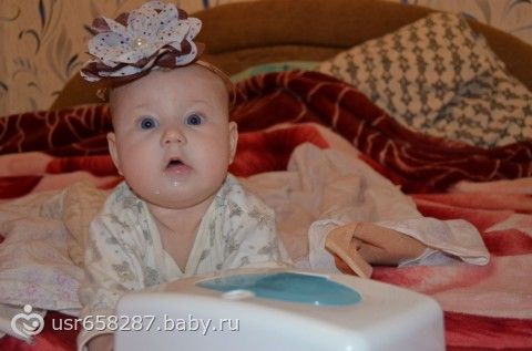 Любим рекламу особенно про зубную пасту. Лезут нижние зубы. Смотрим Машу и Медведь. Любим держать ножки руках. Особенно смешат мамины волосы, особнно собраные в хвост. Вчера совершили первый полет с дивана я думала у меня серце остановится. Прививок так и нет, врача на участке тоже вообщем никого и ничего нет. Ну и фото