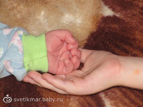 Сашулька братика очень ждала. Сейчас ажиотаж не спадает. Саша все время рядом. Раньше меня слышит, когда братик закричит и первая к нему мчится. Володя часто уже наблюдает за Сашиным мельтешением вокруг него. У Сашульки второе младенчество — играет в основном погремушками :))