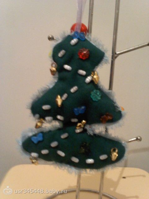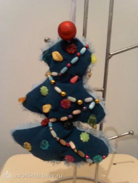 сделала вот такую елочку из ткани и бусин!!! Дочке очень понравилось и сегодня уже вместе с дочкой делали вот такую)