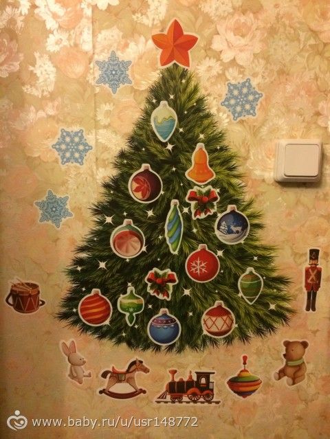 Красиво))) А мы в этом году не наряжаем( Дочка повалит — сломает — съест))). Мы наклеили.