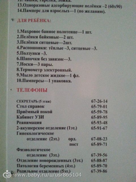 В приемном покое другой список, только зачем покупать больше мне так заведующая и сказала :-) ну Коу делать нечего пусть тащат больше на следующий день после родов заставят унести домой
