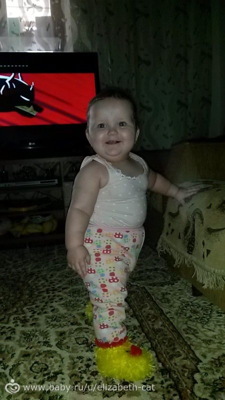 Ползает реактивно, долго стоит у дивана или у ТВ тумбы, ходит и старается даже бежать, держась за опору))) такая смешная)))