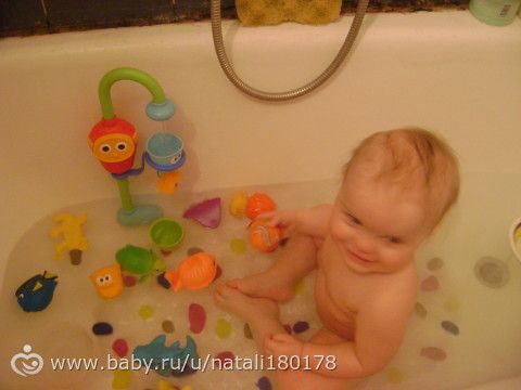 У меня дочь играет в основном стаканчиками(с отверстиями и без), любит переливать водичку из одного в другой, и просто наливать воду и выливать из них, поэтому всегда оставляю включенной водичку пока купается — без этой струйки у нас и купание то наверно не выйдет. Еще нравится колечки пластмассовые собирать по ванной и складывать их в ручку или ведерко. Всеми остальными игрушками не играет — всякие резиновые уточки, динозаврики не интересны. А у вас?