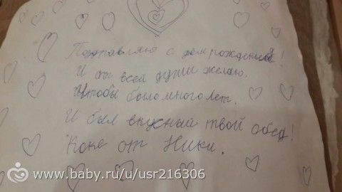 очень милая открыточка от крестницы)) со стихотворением, которое она сама написала. (7 лет)