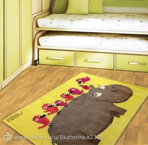 По мне лучше с бегемотом — потому что он веселый, красивый и небольшой что очень удобно при уборке — и под ним помыть просто и его тряхануть супер удобно) а так то мы сами от ковров отказались и совсем не паримся про то, что пол холодный) он не ледяной у насоть и ламинат