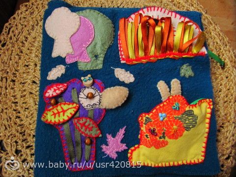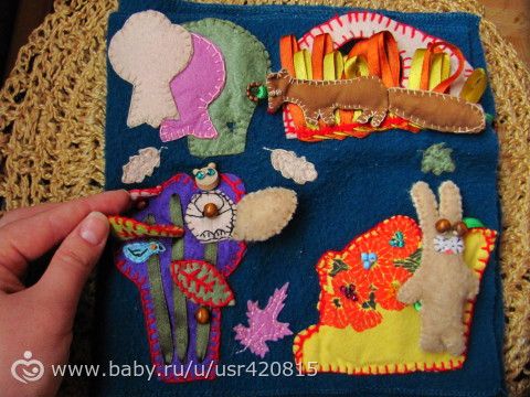 Первая страница мягкой книжки (готова пока только одна). Куст и хвост белки шелестят: