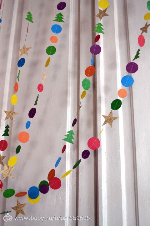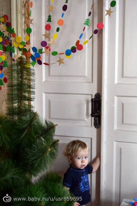 Сделала две гирлянды. Одной украсили дверь, а второй планируем украсить елку.