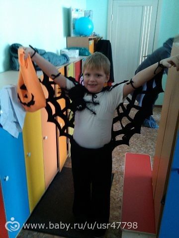 Был у нас в садике утренник, в ноябре — хэллуин. Шили сыночку костюм паука.