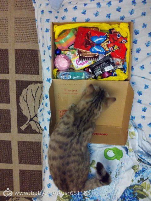 На пороге нас встречает джем и начинает выпрашивать… Долго нюхал и терся об коробку....