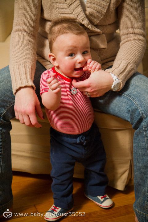 — встает на ножки везде где можно за что то взяться.
