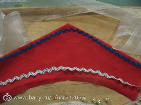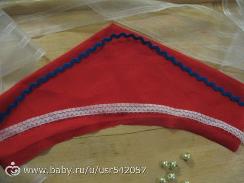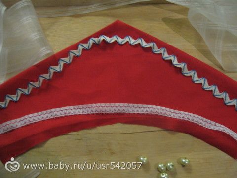 Дочка просит кокошник «как у русской красавицы». Нашли вариант который нравиться, вырезали форму. Теперь надо украсить. Набросала несколько вариантов (в магазин ехать некогда, надо выкручивать из того, что есть. Завязываться будет сзади бантами белыми. Платье — сарафан (не глаженный, простите) прилагаю, что бы все в одном стиле было хочется.