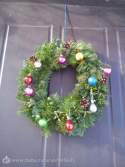 У нас традиция есть — перед НГ едем с мужем туда где жила его бабушка, там просто огроменная ёлка возле дома, вместе ломаем веточки и дома я делаю веночек и украшаю, а он вешает его)