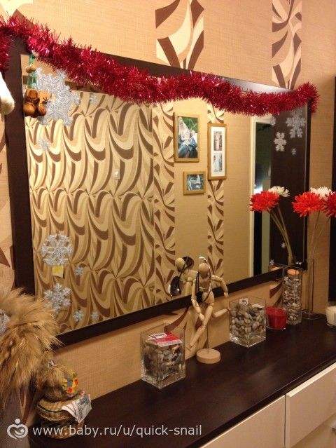 Украсила в зале елку и кухню! По стандарту и зеркало в коридоре. Вот стол еще не обдуман, мы с Тимохой на строгой диете((( потому выбор не велик и печален)