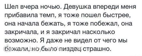 Ох ведь ненормальная! У нас маньяк в нижнем, я из-за него после пяти вообще из дома не выхожу.