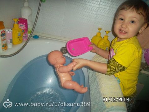 Купала куколку целый час, не могла ее никак выгнать с ванной)))