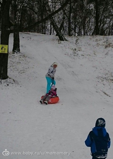 Мы сейчас каждый день на горку бегаем, катаемся на плюшке.