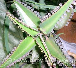 Нашла в инете.да его походу есть разновидности… я знаю есть, типа как алоэ выглядит, только листья шире больше и по краям типа семена- отросточки мелкие