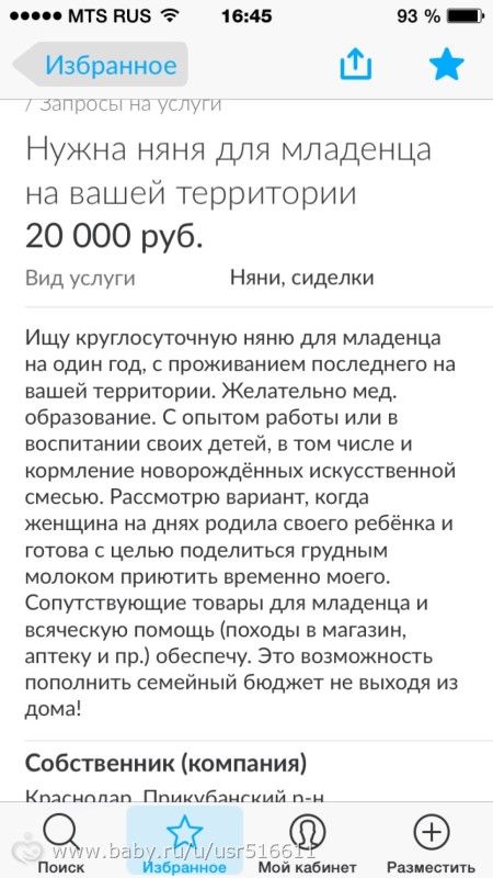 Мы с гражданской женой разошлись и ребёнок, который родится в феврале, остаётся со мной. Ищу женщину, готовую помочь с воспитанием, кормлением, пеленанием, гулянием и т.д. на вашей территории за 20000р. в месяц. Почти всё купил (кроватка, коляска и т.д.). Возможно кормление ребёнка вашим грудным молоком. Если интересно напишите, обсудим.