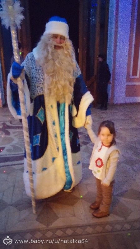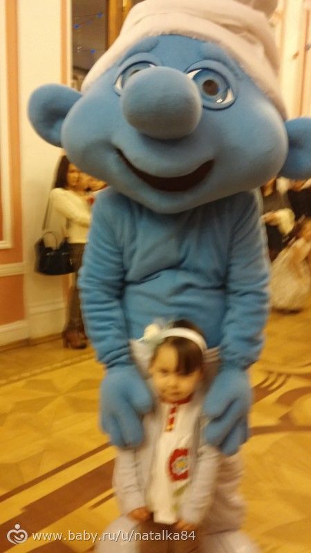 нам подарков не давали, но был смурф и заяц, ростовые куклы- фоткались бесплатно, и дед мороз на представлении был шикарный, после представления перед спектаклем с ним сфоткались))))представление перед спектаклем конечно затянули, дети все устали… внизу да сидел порнографический дед мороз.Это было все сегодня.
