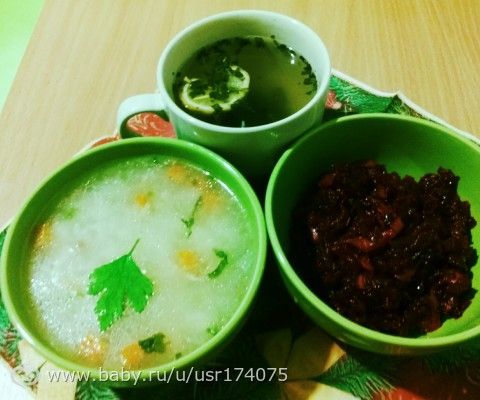 Суп рисовый с курицей, без зажарки, без картохи, салат из свеклы, белый чай с лимоном.