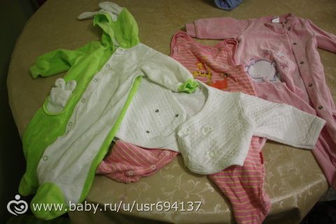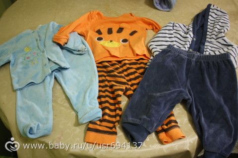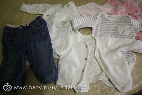 всякая повседневная одежка (в основном 2-5 месяцев), но есть на новорожденного 3 бодика mothercare, джинсы и тигриный костюм mothercare