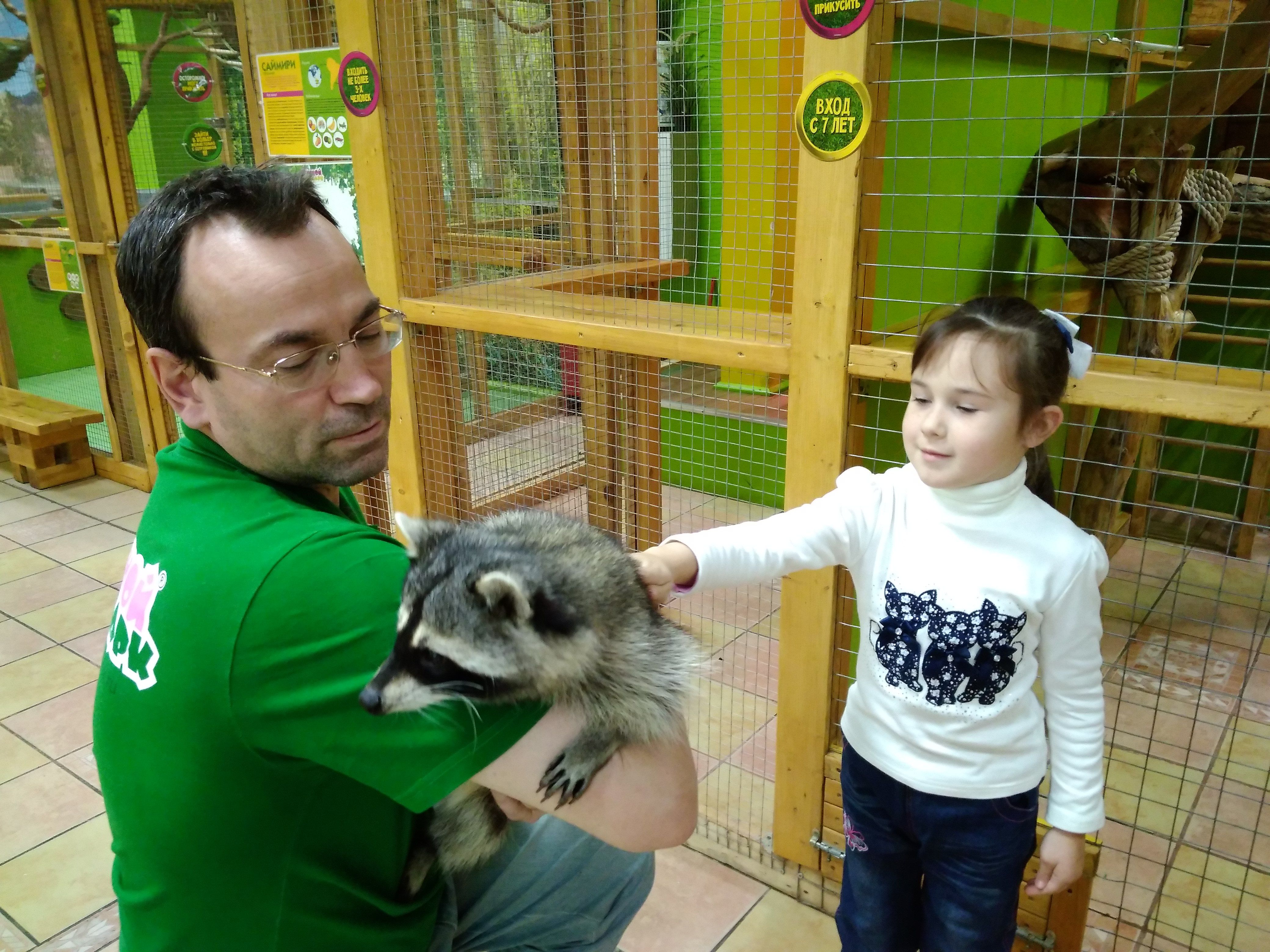 Наконец-то мы добрались до ручного зоопаркаБу прям сразу направился к загону с хрюшками, и они стали его первой и самой сильной любовью))) Хорька гладить и кормить сначала побаивался, а потом вошел во вкус, так что кроликов поперегладил всех, как и морских свинок и даже ежиков. Енот не вызвал бурного восторга, чего нельзя сказать о папе))) Узнал попугайчиков (мы с ними познакомились на зоовыставке в Детском парке), на втором этаже заглянул к козочкам в загон, но быстро оттуда вышел, полюбовался хомячками и засел за рисование, когда уходили, то Димочка за собой все 3 стульчика, на которых успел посидеть, задвинул. А вот я я влюбилась в парочку носухов, покормили их (но я, балда, думала что видео снимаю, а сама на запись не нажала). Было очень интересно, зверюшки понравились, к сожалению, не попали к белочкам, т.к. те спали и не покормили попугайчиков, но все наверстаем, ведь хотим в этот зоопарк хотя бы раз в месяц ездить))) А по пути из зоопарка не обошлось без скандала, т.к. ребенок забрался на мотоцикл, потом еще на какой-то симулятор машины и уходить не хотел(((