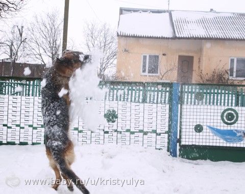 Спасибо))) С собакой было в планах, чтобы задний фон был размыт, и впереди он в снегу, но фон не размылся, объектив плоховат и не получилось так как хотела, а он потом отказался больше прыгать, так что такая немного неудачная фотка получилась....