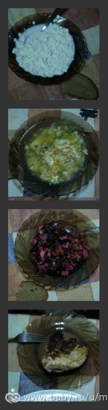 Утром творог и кофе, не могу без него, днем уха, перекусила яблоком.Вечером курица(кожу сняла)и винегрет.