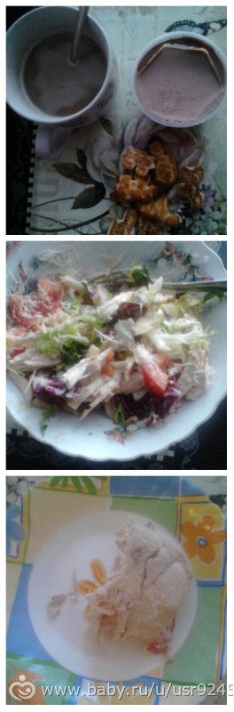 Вместе с тем к этому всему добавлялись и творог и огурцы с помидорами и еще день рождение ребенка, а там соответственно торт, салаты, нарезки и т.д. и т.п. — могу заключить — что питание было УЖАСНЫМ. План по питанию мой был не соблюден всю неделю… Потому и привес...Спорта не было увы, очень хотела но так себя и не пересилила, НО много убиралась по дому, мокрая была, потому как гостей за эту неделю было много...