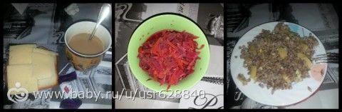 О: гречка, мясо, салат из моркови