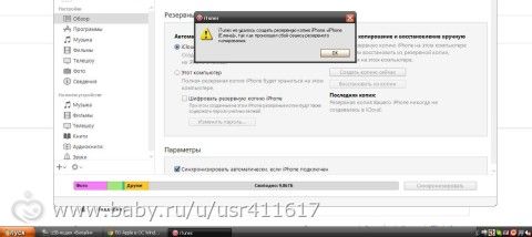 резервную копию не создать, вечно выдает вот такую ошибку