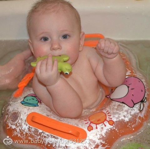 на шею не давит )) А на живот муж одел только для фото. потом сразу же снял. он и на шею то ей не одевает ))) под попу подкладывает для мягкости ))) так что у нас круг скорее как игрушка для купания.