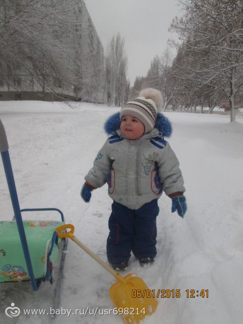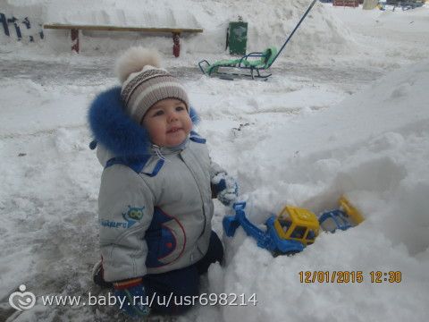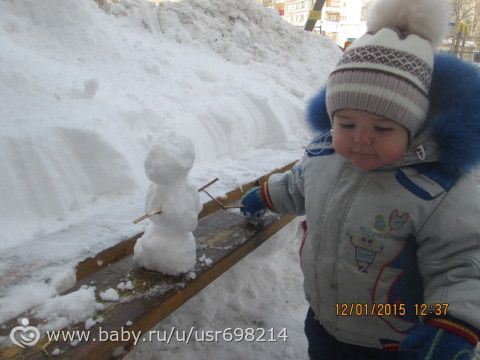 Итак начнем.Со снегом познакомились, валялись, копали трактором, лепили снеговика.Снег вызвал У Свята дикий восторг