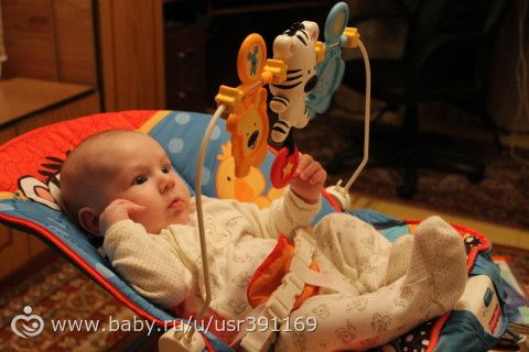 За этот месяц он стал еще больше общительным, но иногда любит проводить время в одиночестве (ну минут 20 ). научился переворачиваться на бочок, хорошо и долго держит голову и плечи. Держит неплохо погремушку. Только почему то ведущая у Миши левая сторона, правой все не так хорошо получается.