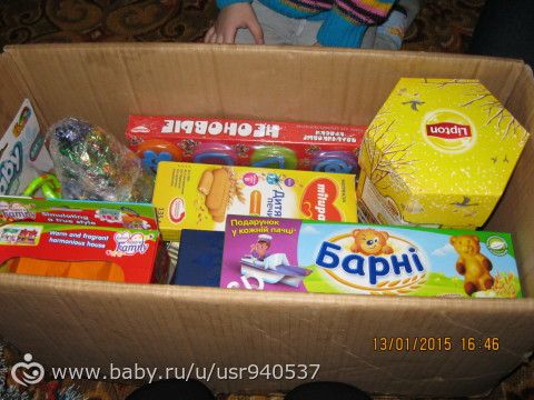 Вот и я вчера получила свою посылочку. Она была огромная. Спасибочки моей дарительнице и её семье. Посылка всем очень понравилась .