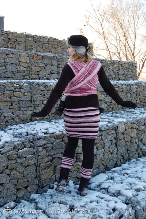 Из минусов — достать быстро ребенка не очень-то возможно, ан мой взгляд.Еще можно попробовать намотку Кенгуру на недлительное ношение. Она удобна тем, что достать малыша можно снизу, опустив на землю из кармана. И взять из положения стоя, накинув на ребенка через голову карман. С большим ребенком фото нет, к сожалению.