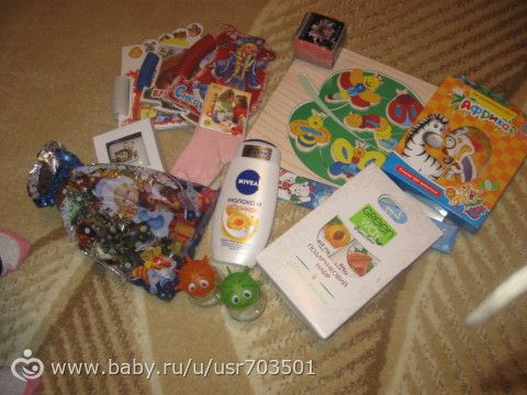 Пришла, моя посылочка, спасибо большое моей дарительнице Леночке, подарки просто замечательные, малая так заинтересовалась сразу всеми подарками и там для нее и разукрашки и книжки и всякие прикольные игрушки и кремы тоже она подумала что для нее))муж сразу стащил конфеты и убежал))он у меня жуткий сластена))спросил от кого посылка, я говорю от девушки Лены, он сказал передать спасибо и еще сказал что у моей дарительницы красивое имя)Во такое чудесное Новогоднее настроение мы получили в конце праздников! Спасибо огромное!