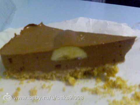 20 грамм желатина залить водой 4 стол ложки… печенье измельчить сильно, растопить масло и залить в печенье сделать однородную массу, в форму положить пергамент по бокам, утрамбовать наше печенье и поставить в холодильник на 15 минут… желатин поставить на водной бане растапливаться, тем временем смешать сметану с сахаром и порезать банан кружочками… достать форму и уложить банан, чуть остывший желатин смешать со сметаной и залить бананы и всё убрать в холодильник на завтра можно кушать..